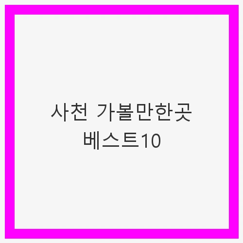 사천의 가볼 만한 곳들은 자연과 어우러져 있는 곳이 많아, 가족 단위 여행객이나 연인들 모두에게 적합한 장소입니다. 또한, 다양한 액티비티와 편안한 휴식 공간이 마련되어 있어, 하루의 피로를 잊고 힐링할 수 있는 기회를 제공합니다. 그럼 이제 사천에서 꼭 가봐야 할 베스트 10 장소를 자세히 살펴보겠습니다.