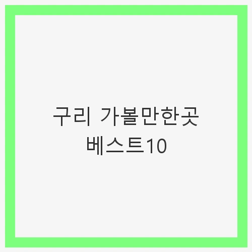 구리 가볼만한곳 베스트 10을 통해 여유롭고 즐거운 여행 계획을 세우길 바라며, 이 도시에서의 특별한 순간들을 만끽하시길 바랍니다.