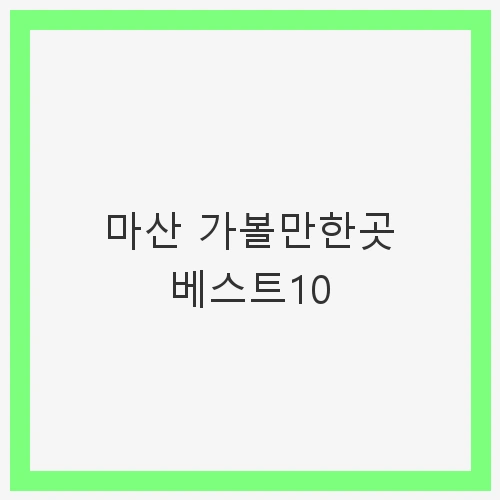 마산은 한국의 아름다운 경치와 풍부한 문화유산이 어우러진 도시입니다. 바다와 산, 그리고 다양한 문화재가 존재하여 많은 관광객들이 찾는 곳이죠. 그런 마산에서 꼭 가볼만한 장소를 모아 '마산 가볼만한곳 베스트10'을 소개하고자 합니다. 이 글을 통해 마산의 매력을 깊이 느끼고, 여러분의 여행계획에 도움이 되길 바랍니다.